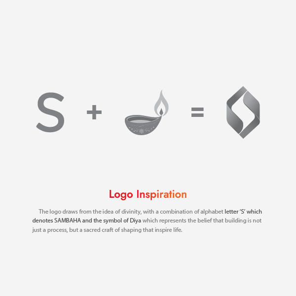 The logo draws from the idea of divinity, with a combination of alphabet letter ‘S’ which denotes SAMBAHA and the symbol of Diya which represents the belief that building is not just a process, but a sacred craft of shaping that inspire life.